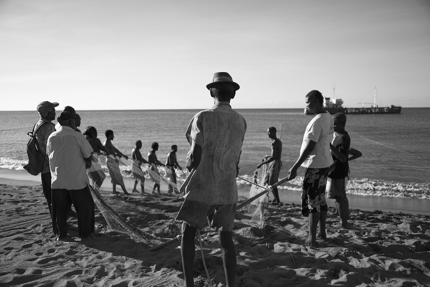 There is a large pipe that runs from the ocean, along the valley to a nearby rum distillery. Large ships moor close to shore to pump molasses to the distillery. The people living in the village come together, both young and old, to pull in a large fishing net which they cast earlier. It's moving to watch two generations living in the now of the moment. I felt privileged to be allowed as an onlooker.